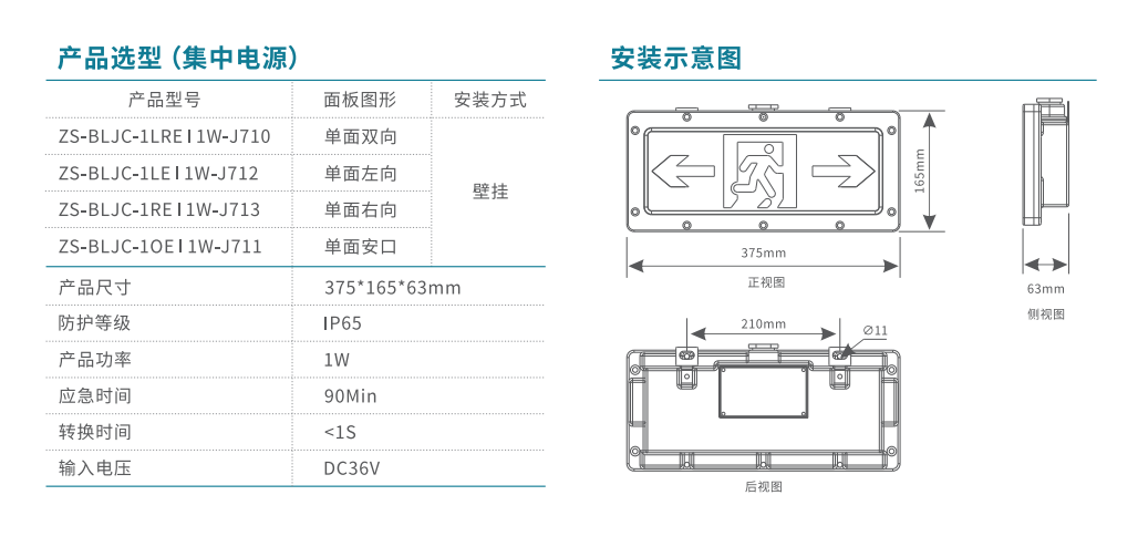 800大型款-單面疏散出口消防應急標志燈 | ZS-BLJC-1OE Ⅲ 3W-J853 | 壁掛