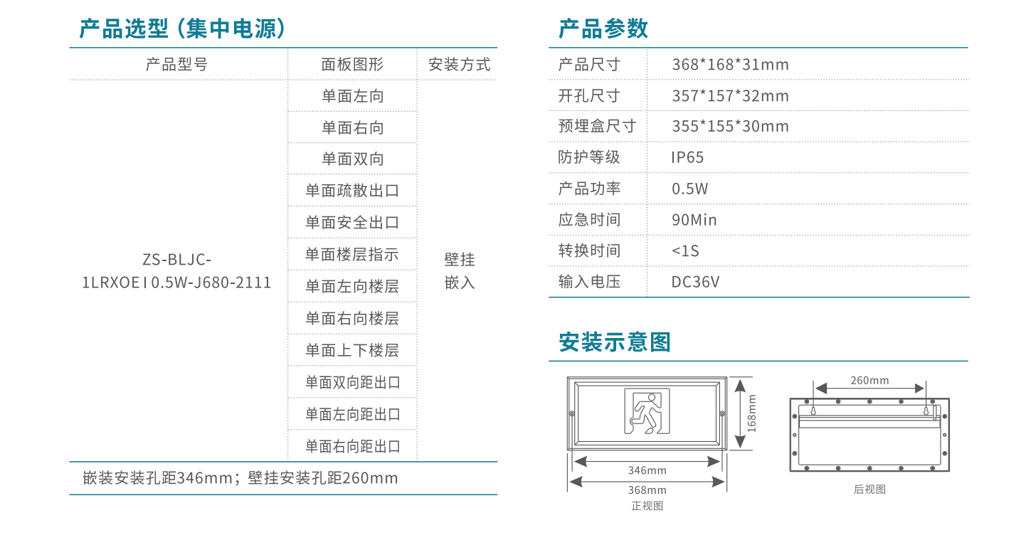 單面左向消防應急標志燈 | ZS-BLJC-1LE II 0.5W-J816 | 嵌入