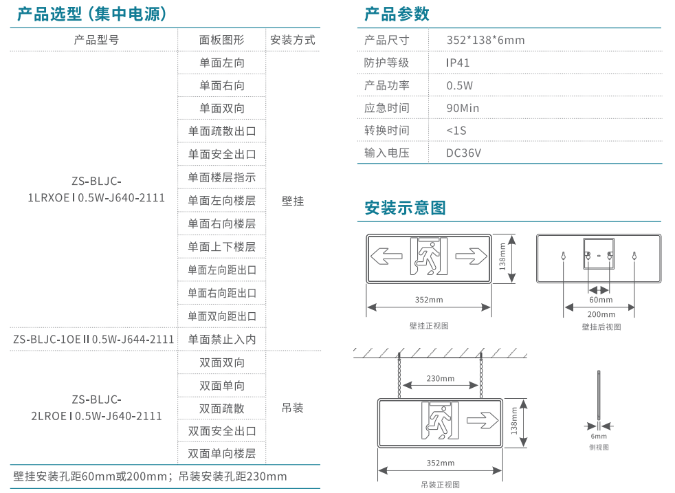 雙面單向、雙面雙向、雙面疏散出口、雙面安全出口、雙面樓層指示