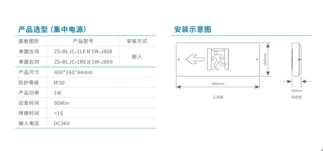 本安型防爆-雙向消防應急標志燈 | ZS-BLJC-2LROEⅡ0.5W-J870-22 | 壁掛/吊掛