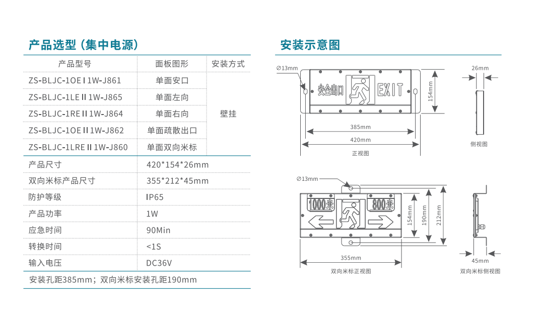 軌道交通-單面雙向米標應急標志燈 | ZS-BLJC-1LREⅡ1W-J860 | 壁掛