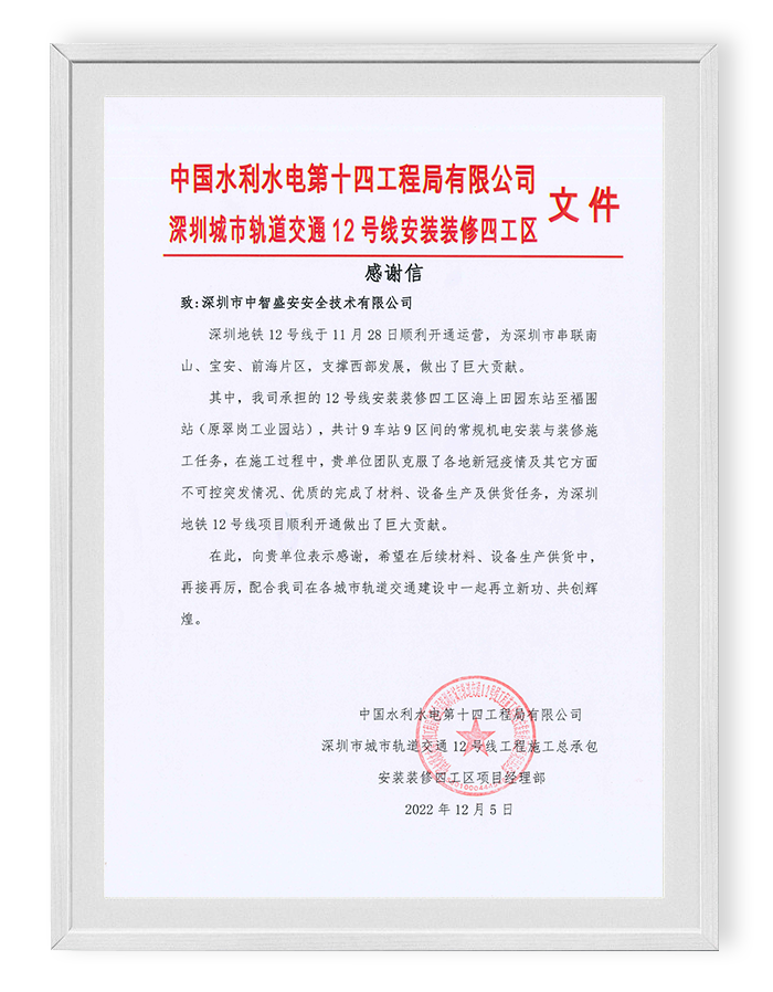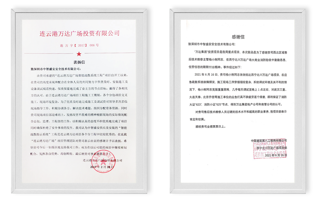 中智盛安獲“深圳地鐵、萬達(dá)廣場(chǎng)認(rèn)可并表揚(yáng)”