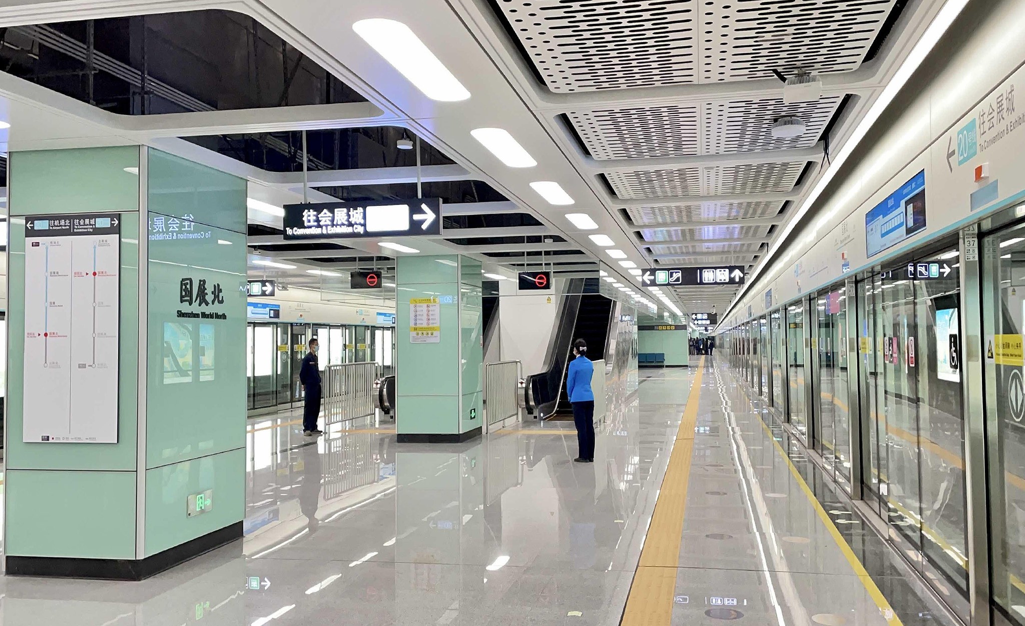 項目概況:深圳地鐵20號線一期起于機場北站,終至會展城站,遠期預留延伸到東莞,一期于20211228日開通運營。深圳地鐵20號線一期線路全長約8.43km,設5座車站,均為地下站,車站分別為:機場北、重慶路、國展中心南、國展中心北、會議中心,可與地鐵11號線和地鐵12號線換乘。深圳地鐵20號線是深圳首條車車通信全自動運行智能地鐵示范線。